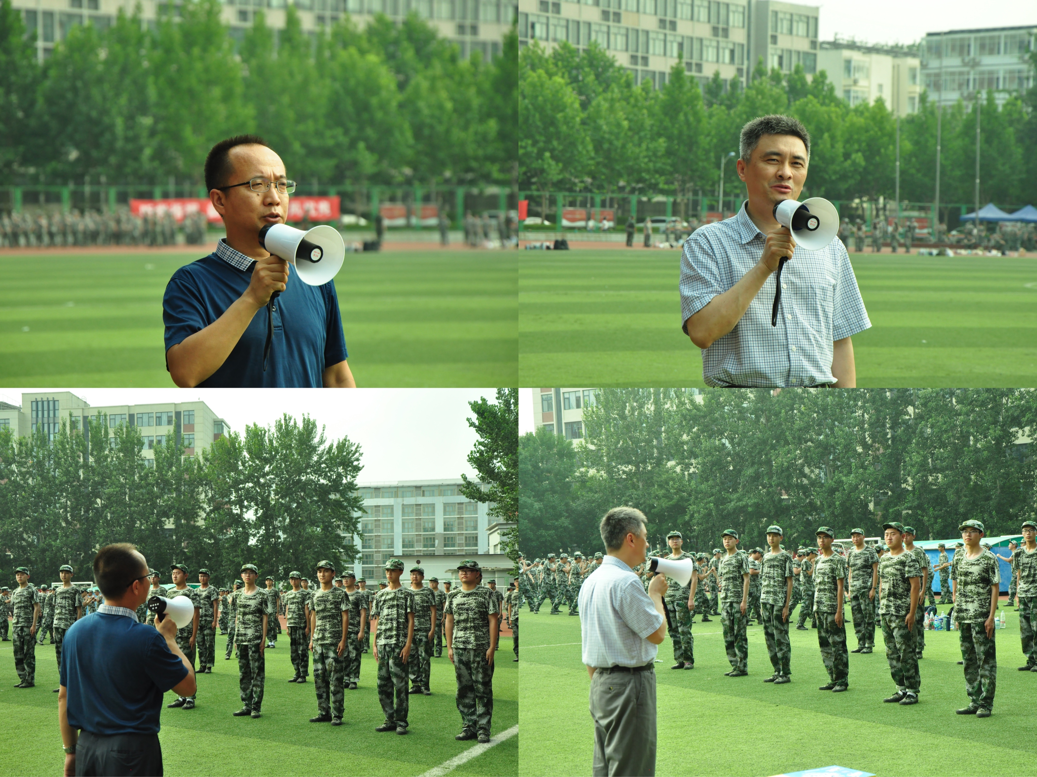 党委书记李林、院长牛风雷、党委副书记赵珥希一行5人到操场看望军训团教官及师生。
