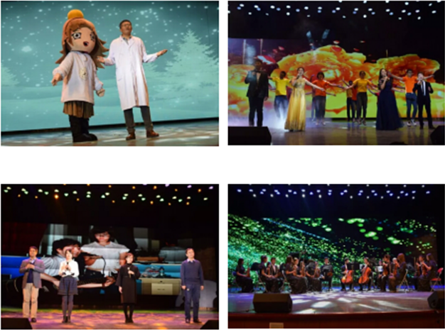 吉祥物“小核子”寻求能源危机环境下解决方案四处奔走并最终搜寻到安全高效的核能作为主线贯穿整个演出。从优美婉约的舞蹈《梅·砺香》开始,到自编自导的话剧《何去何从》;从师生合唱的《那些年》、《相亲相爱》,到师生朗诵的《春的篇章》,凸显出学院师生和谐、共同成长的美好一幕。学生演唱的《和未来有约》,西洋乐团的《SUMMER》和李雪倩老师歌唱的《在希望的田野上》将晚会推向高潮。在赵珥希老师《榜样》的歌声里,陆道纲,赵珥希,吕雪峰,吴英四位老师代表建院以来的一直工作的十位老师接受来自毕业生的祝福。