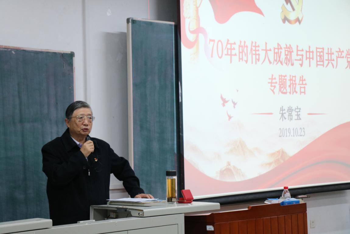 10月23日上午,脱裤吧 党委深入推进“不忘初心、牢记使命”主题教育,邀请大学主题教育指导组第二组组长、原脱裤吧 党委副书记朱常宝老师为学院师生党员讲授专题党课,党课主题“70周年的伟大成就与中国共产党”。主题教育第二指导组葛红、张冬月参加了会议。