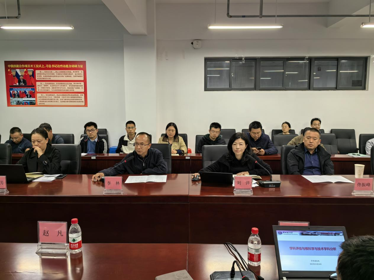 首先,李林对李惊涛一行来院指导交流表示热烈欢迎,并着重介绍学院近期取得的一系列喜人成果。李惊涛做了《学科评估与核科学与技术学科分析》专题报告,全面介绍了学校学科专业的总体建设情况,对标第五轮学科评估和软科排名,对核学科的发展进行有针对性的指导。刘洋汇报了学院的整体情况,深入分析了学院在学科建设中取得的成绩、存在的不足以及未来的发展思路。