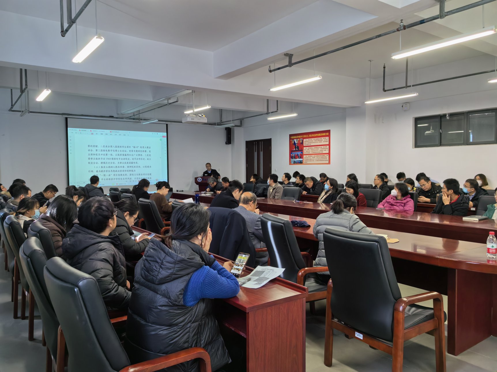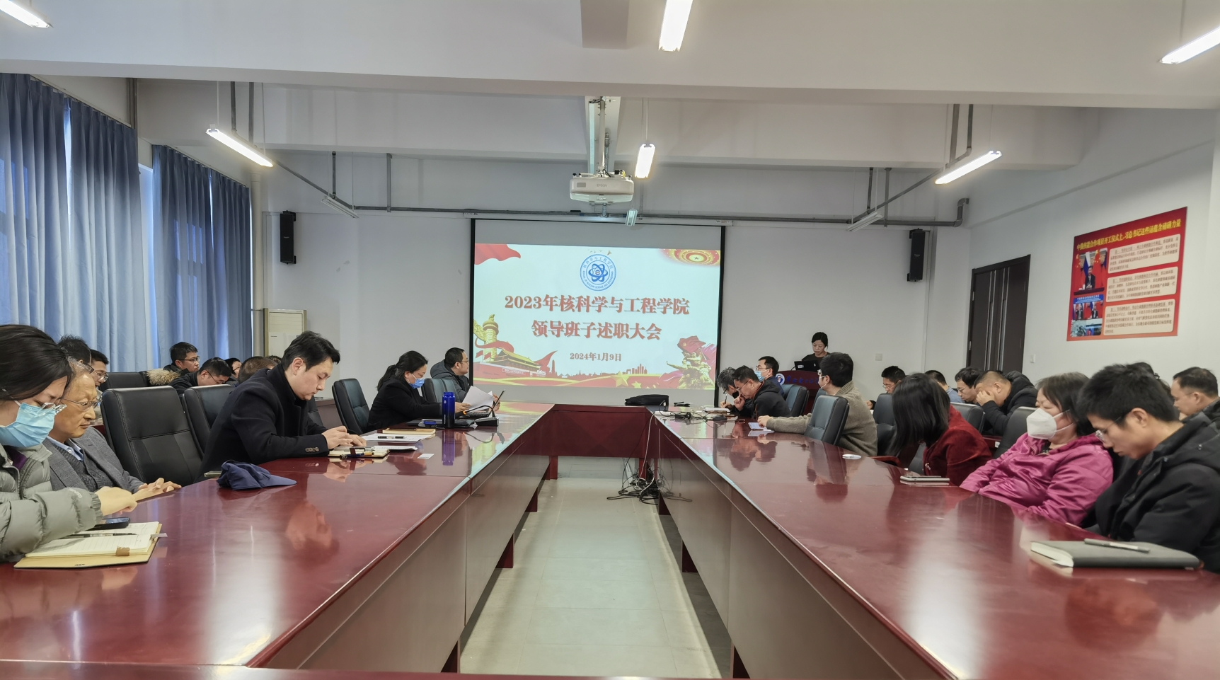 1月9日中午,脱裤吧 召开领导班子和处级干部考核述职大会,学院全体教职工参加会议。会议由学院党委书记李林主持。
