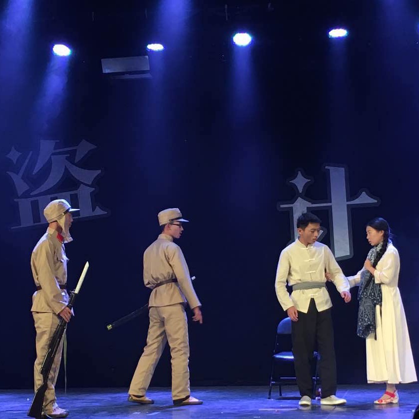 舞台追光亮起的那一刻,观众们仿佛立即被带入了那个战火纷飞的年代。沈阳少女七丫与父亲老汉相依为命,过着清贫却安宁的生活。直到1931年9月18日,日军侵占沈阳,七丫与老汉不得不背井离乡,以卖艺为生。一次街头卖艺时,饥肠辘辘的七丫因体力不支、拒绝卖唱而被老汉鞭打,这引起了过路学生的路见不平。学生将老汉打倒在地,讲了一番“天下兴亡、匹夫有责”的道理。老汉被他的话打动,决心拿起武器与日本人抗争,但不幸牺牲在了日军的枪炮之下。七丫怀揣着失去父亲的悲痛,对学生质问声声,终于让他从纸上谈兵临阵退缩,到慨然从军以身救国。学生终于读懂了“天下兴亡”的真正含义,并用自己的力量来保家卫国。核电1602班的演员们凭借着出色的演技和完备的道具,为观众们演绎了一段荡气回肠的爱国诗篇。
