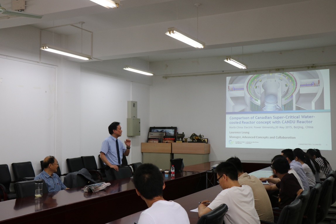 师生进行了学术交流。Laurence教授是国际超临界水冷堆设计研发的带头人之一,在加拿大原子能公司承担CANDU-SCWR热工水力的研究工作。