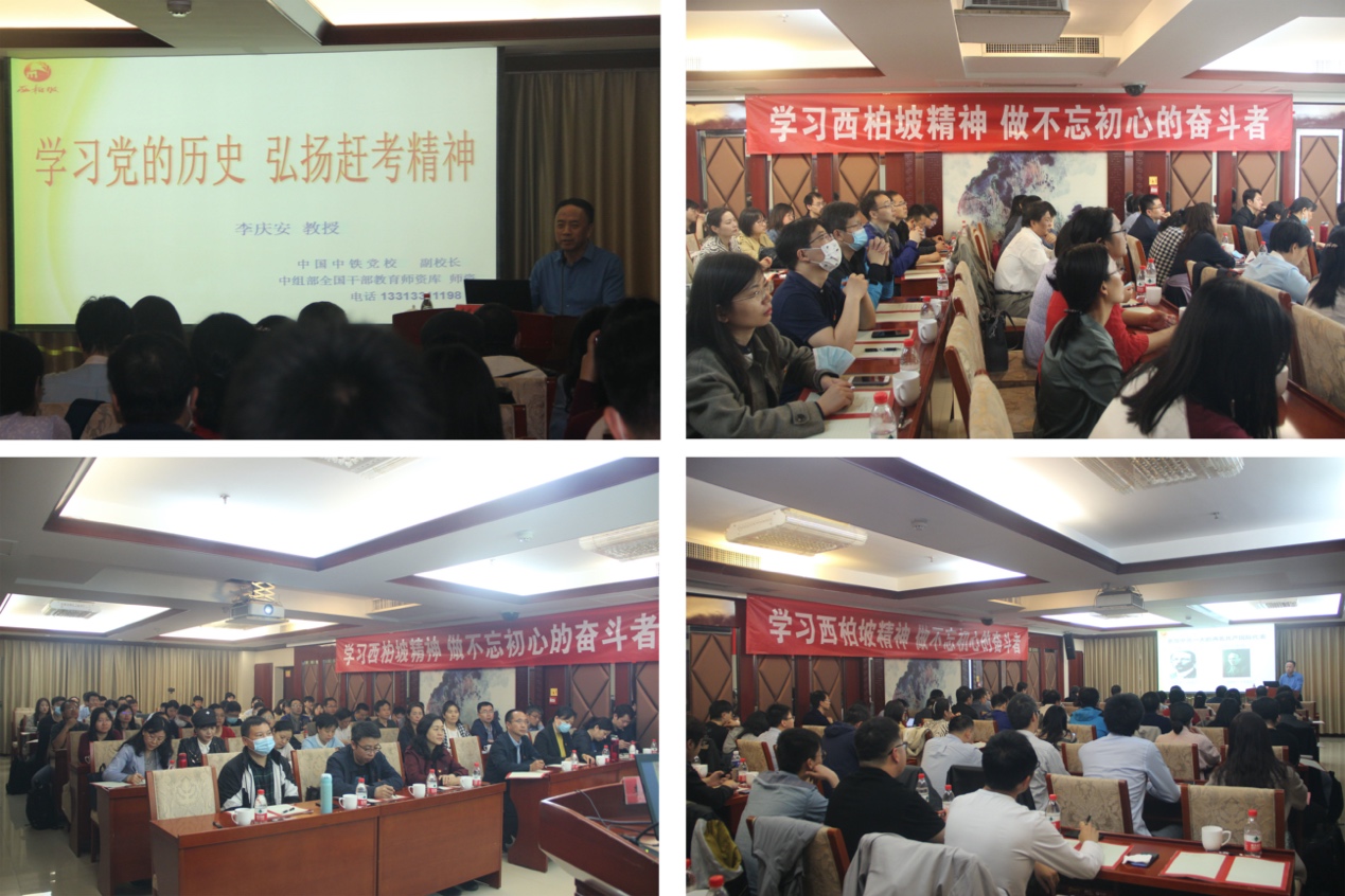15日中午,一行人到达西柏坡的时候,天空中正下着雨,但这丝毫没有影响学员们学习的热情。原西柏坡纪念馆副馆长,西柏坡精神研究院副院长,现任中国中铁党校副校长李庆安,给学员们作了题为“学习党的历史 弘扬赶考精神”的专题讲座,向学员们生动详细地介绍了“红船精神”、“井冈山精神”、“延安精神”、“西柏坡精神”,他讲到,要始终坚持“两个务必”,把党史学习教育一定要落实到怎么为人民服务上去,跳出历史周期率,走好新时代的“赶考路”。