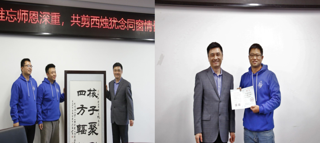 十年虽长,但师恩难忘。交流过后,核电0601班校友向学院赠送带有特殊寓意的字画“核子聚裂,四方辐辏”,希望学院越办越好,发展成为国内顶尖的核专业人才培养单位,核专业学子都能在这里得到知识的积累与精神的洗礼,无论奔赴何方,都能为国家的核电事业发展贡献力量。学院聘任臧启勇为核电0601班校友联络员。