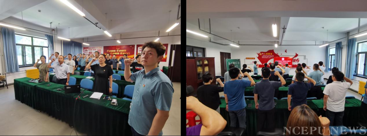 赵珥希带领全体参会党员重温入党誓词,全体参会党员面向党旗,郑重承诺为党的事业奋斗终身。