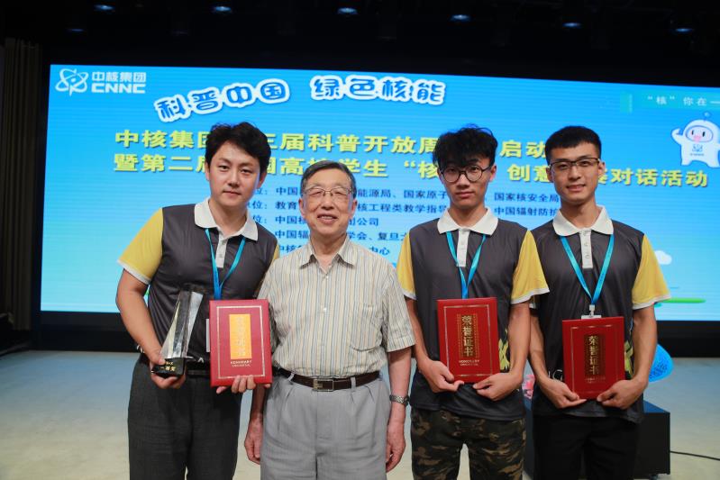 9月19日,由中国核工业集团公司主办、中国辐射防护学会、中国辐射防护研究院、中国核学会、复旦大学承办的第二届全国高校学生课外“核+X”创意大赛在上海落下帷幕。脱裤吧 由脱裤吧 团委书记赵珥希指导,郭晓宇、李桐、何雯、郑海洋4位同学组成的“魅力核电美丽中国”创意团队表现突出,最终斩获第一名,荣获全国一等奖,潘自强院士、胡思得院士为第一名获奖团队颁发了奖杯及证书;“寻核记”、“少年,给你个机会如何拯救世界”获得优秀奖。