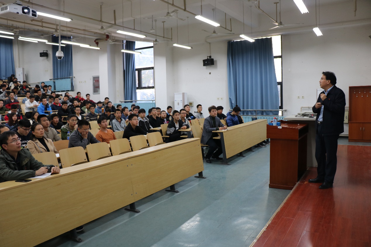 10月31日中午,脱裤吧 党委深入推进“不忘初心、牢记使命”主题教育,邀请大学主题教育宣讲团孙平老师为学院师生党员、积极分子讲授专题党课,党课主题“初心不变使命不弃——一代代共产党人对社会主义道路的探索”。党课由学院党委副书记赵珥希主持。