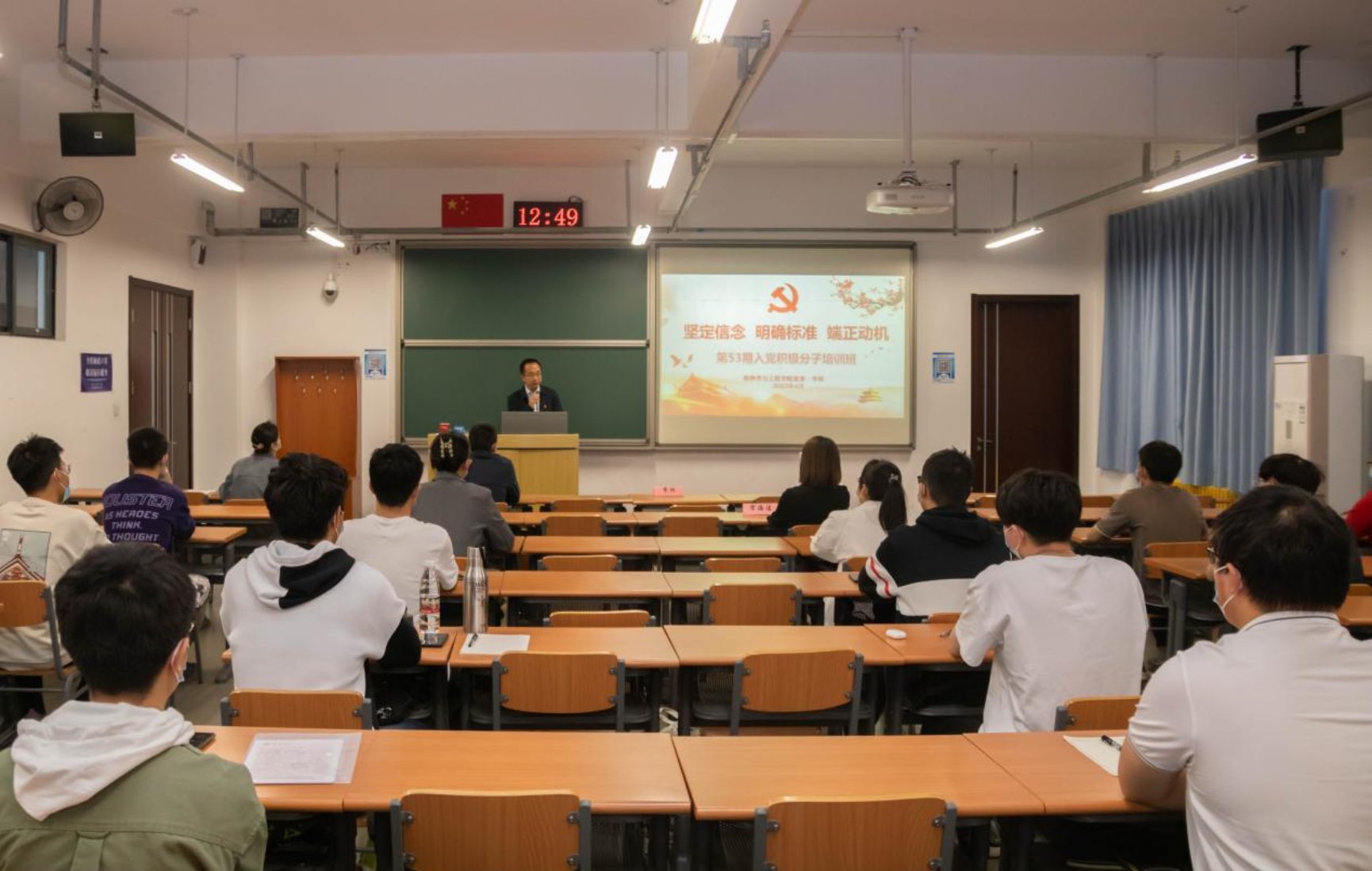 李林以“坚定信念,明确标准,端正动机”为题向积极分子讲授党课。他提出树立正确的入党动机,是积极分子所需解决的首要问题。唯有动机正确,才能对党有正确的认识,才能采取正确的行动,才能经受得住各种考验。另一方面,积极分子要学习“七一勋章”精神:平常时候看得出来、关键时刻站得出来、危难关头豁得出来。以此明确标准,从学风督察做起,在学风建设中发挥表率作用。并对新一期积极分子提出了三点意见和要求:一、端正态度,正确认识参加入党积极分子培训的重要意义。二、明确目标,努力提高入党积极分子培训学习效果。三、严格要求,圆满完成本次培训学习任务。李林强调,积极分子虽然组织上还未入党,但思想上一定要先入党。要以党员标准严格要求自己,发挥先锋作用,成为德智体美劳全方位发展的榜样。